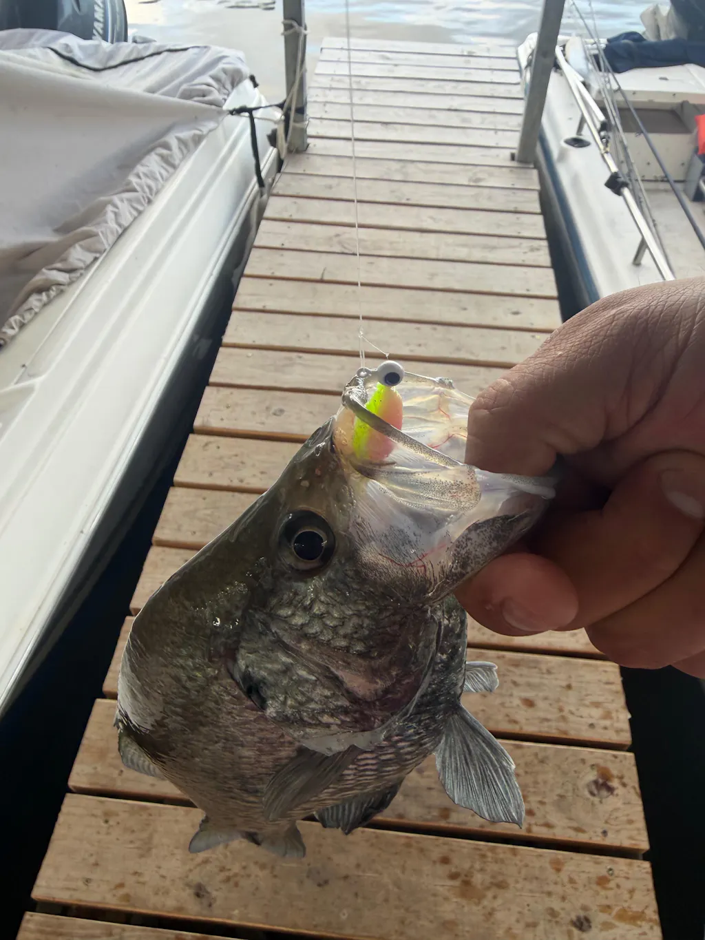 These jig heads get the job done! Razor sharp hooks that have no problem penetrating these crappie! Get ya some!